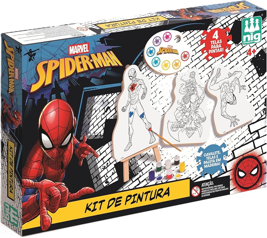 Estimule a criatividade e a imaginação das crianças com o Kit Pintura em Madeira Spider-Man da Nig Brinquedos!